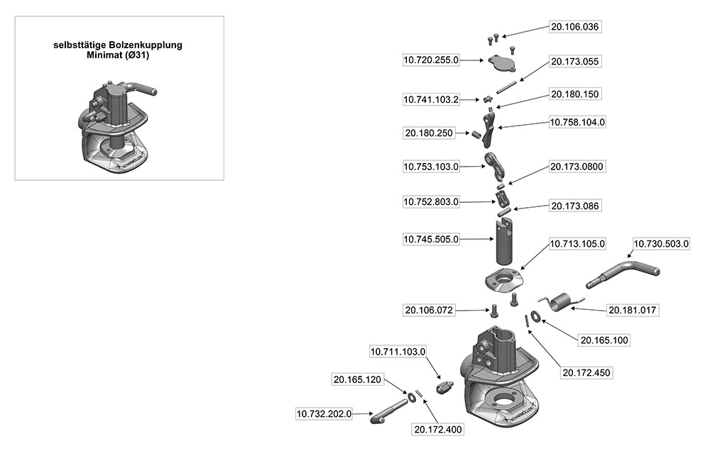 Verbindung: selbsttätige Bolzenkupplung Minimat (31mm)